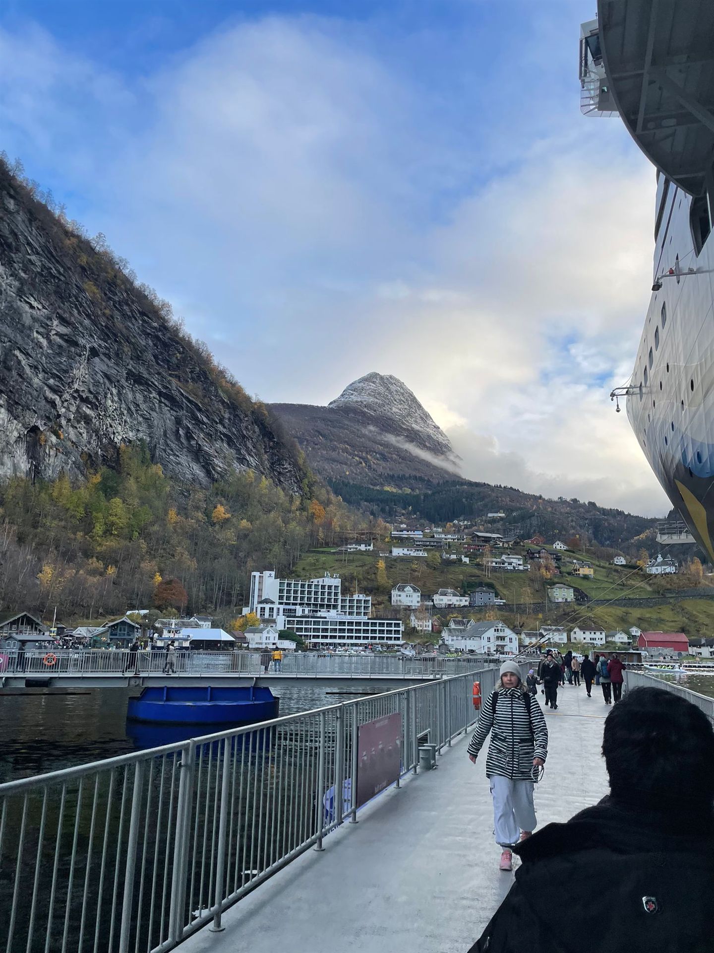 Später ging es in den Ort Geiranger selbst – klein, aber magisch. Ich nahm an einem Ausflug zu den Aussichtspunkten „Ørnesvingen“ und „Flydalsjuvet“ teil – und hatte Gänsehaut beim Blick auf das Tal.